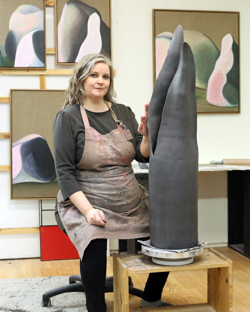 Ósk Gunnlaugsdóttir (1979) lives and works in Reykjavik. She graduated from the Iceland Academy of the Arts in 2019 as well as studying sérigraphie at the Académie Royale des Beaux-Arts in Brussels for a semester. Ósk works in diverse material and frequently connects different forms of visuals. She draws inspiration from both nature and experience along with the human influence on nature whether through the artwork, philosophy or nature itself. Ósk has held three solo exhibitions since graduation and participated in a variety of group exhibitions such as at Korpúlfsstaðir and the Nordic House. She has been active in the art community in Iceland and is on the board of the Reykjavik Association of Sculptors.