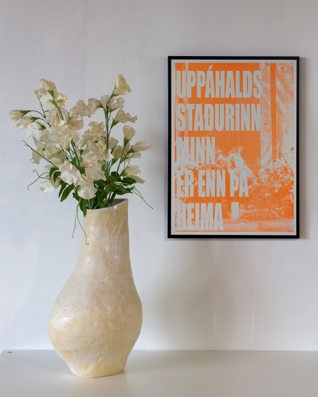 Uppáhalds staðurinn minn er ennþá heima Flurocent orange Sérigraphie on 170gr Munken Pure Rough 42 x 30 cm 2023