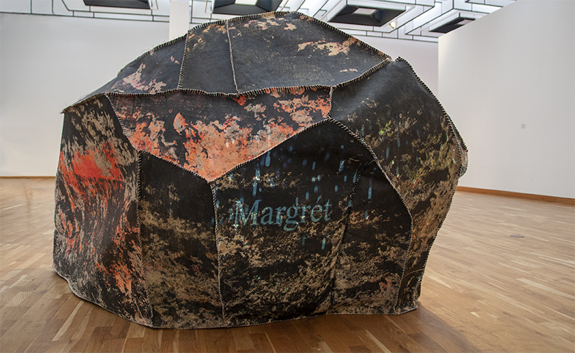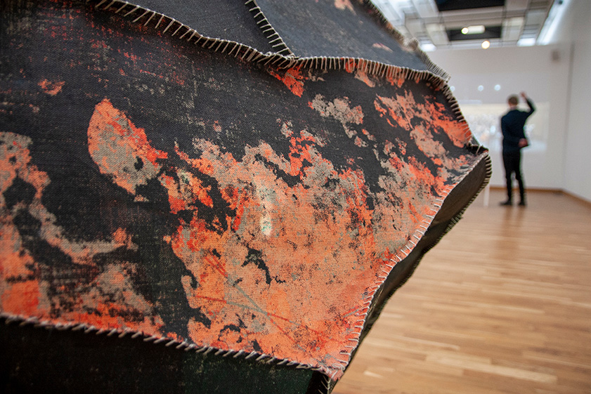 Silkiprent á hör, hör þráður, vír og vídeó
